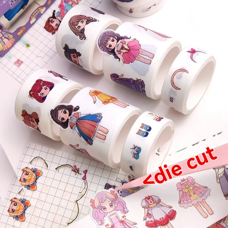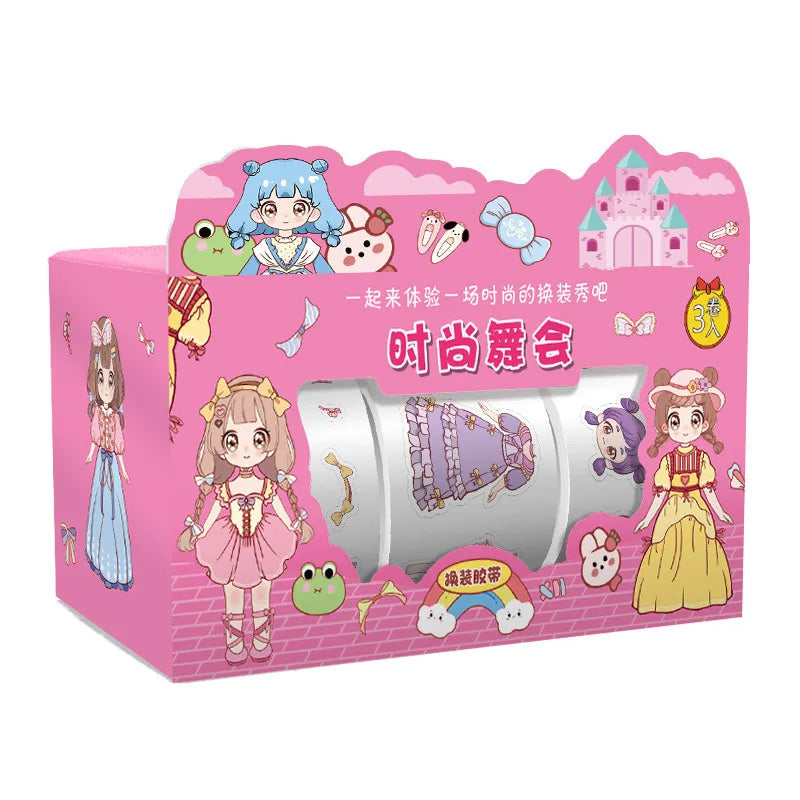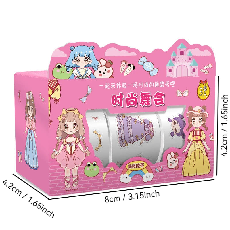1box Cute Princess Dress Up Sticker Girl Cartoon Washi Tape Set Cute Children's Handbook Character Clothes Decoration Sticker