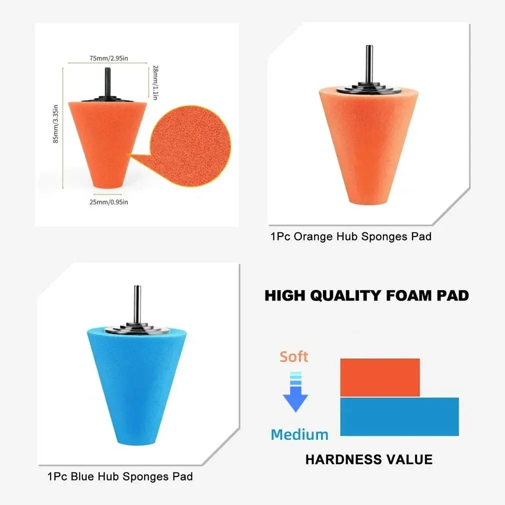 2pcs Car Hub Polishing Sponge Grinding Head Metal Plastic Grinding Conical Sponge Polishing Sponge Wheel