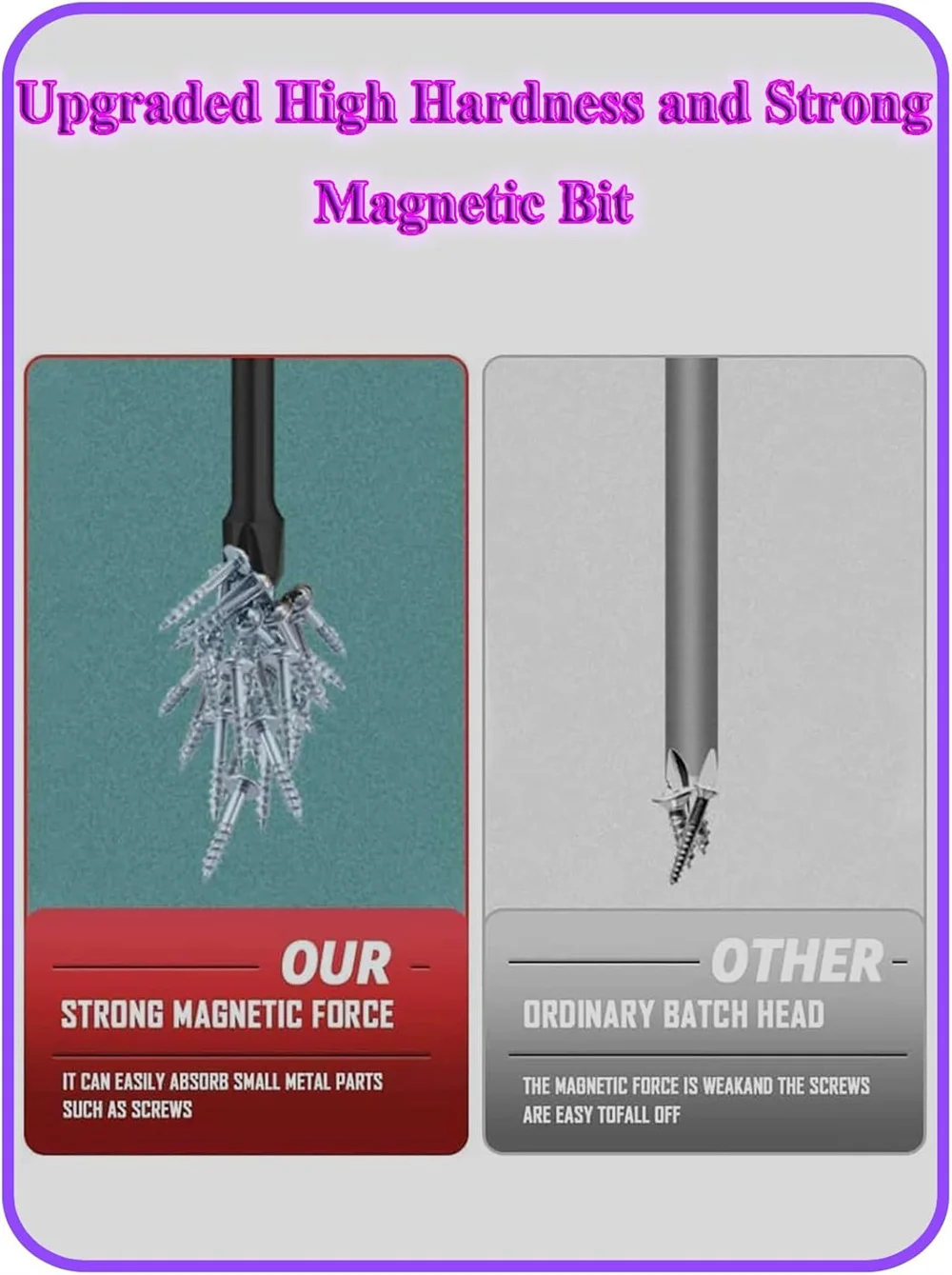【Boosted Performance】: Revolutionize the way you work with our magnetic screwdriver bit set. Upgraded High Hardness and Strong Magnetic Bit is built for high-impact high_strength screwdriving. Suitable for screwdrivers, especially impact drivers. Experience increased productivity as you effortlessly complete tasks faster with most electric screwdrivers and drills.
