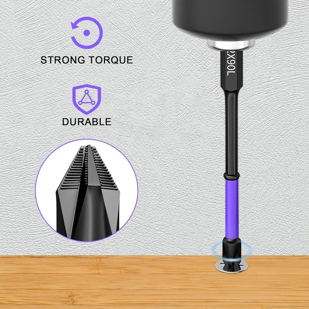 【Hardness≥62HRC】: Our magnetic screwdriver bit set features an upgraded version with optimized materials that offer high precision and hardness levels 62hrc, ensuring exceptional strength and endurance that surpasses other products.
